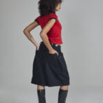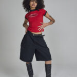 a bermuda baggy tem modelagem mais ampla. produzida em jeans preto, ela oferece um caimento oversized no estilo jorts, priorizando o conforto sem perder a estrutura marcante do design.