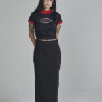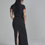 a saia maxi preta tem modelagem reta slim, apresentando um caimento estruturado em alfaiataria. com cós regular e fenda traseira, garante mobilidade e um design moderno.
