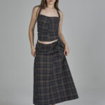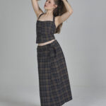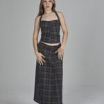 esta saia maxi tem a modelagem evasê, com um caimento fluido em brim estampado, contando com fivelas reguladoras nos dois lados da cintura para um ajuste personalizado e fechamento discreto em zíper invisível traseiro.